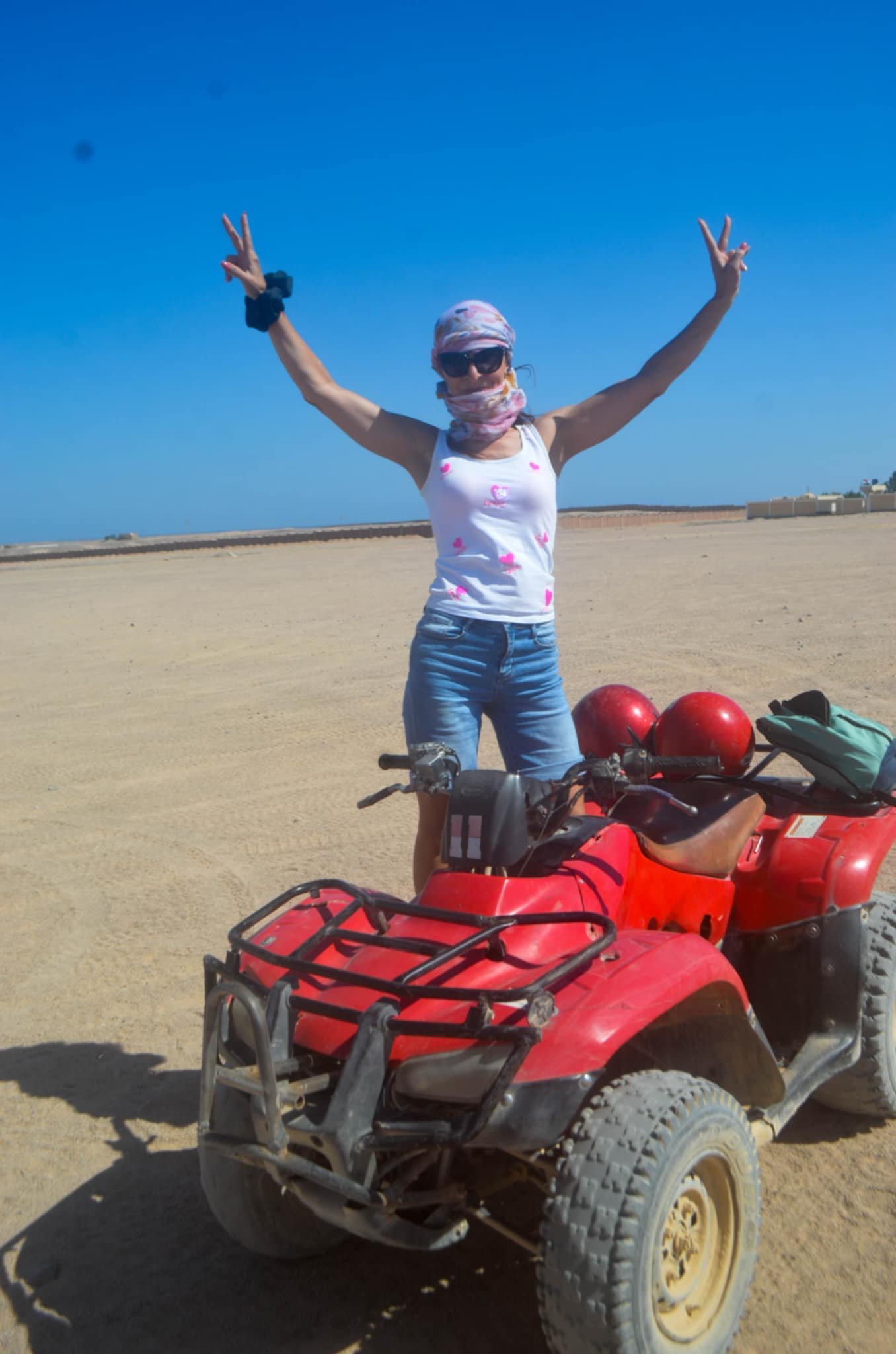 Това приключение започва , когато представител Ви вземе от хотела и Ви транспортира до Сафари гаража . След кратка инструкция се качвате на АТВ-то и следващите 3 часа придружавани от квалифициран инструктор , ще се наслаждавате на пустинята . След прибиране обратно в гаража , трансфера , ще Ви върне в хотела .