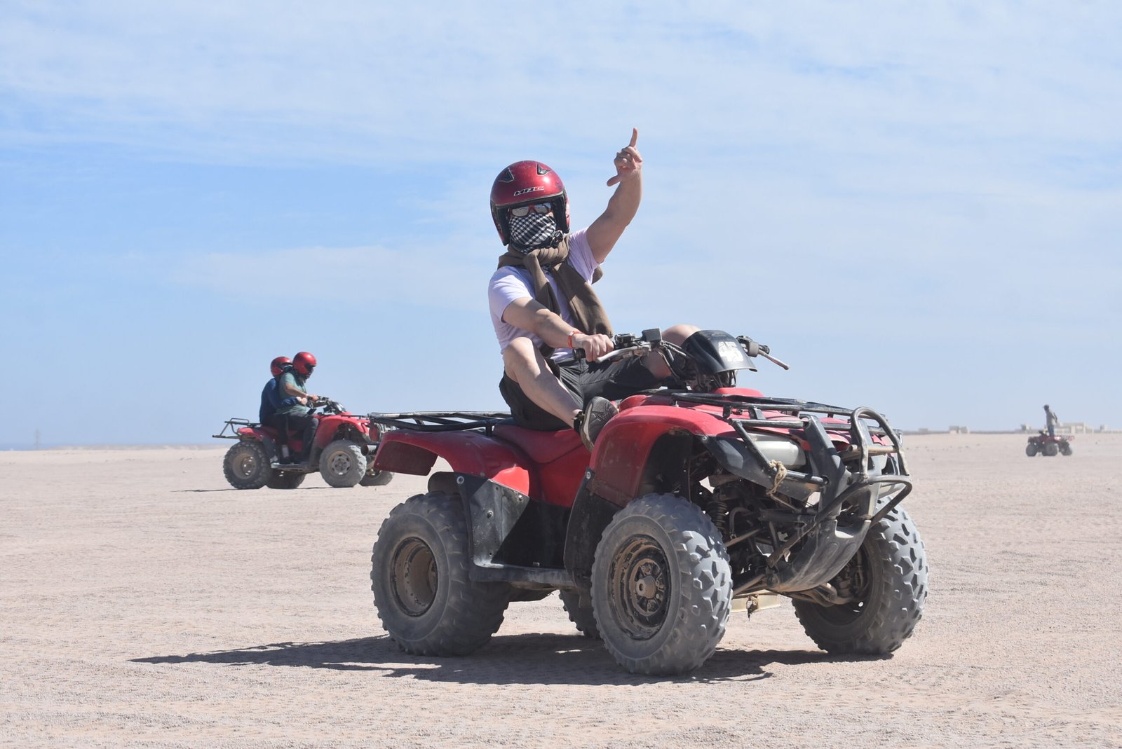 Това приключение започва , когато представител Ви вземе от хотела и Ви транспортира до Сафари гаража . След кратка инструкция , ще карате за около 10 мин. Бъги , и около 15.00 ч. ще се отправите към Бедуинското селище , което се намира на 25 км. С АТВ-то придружавани от квалифициран инструктор .